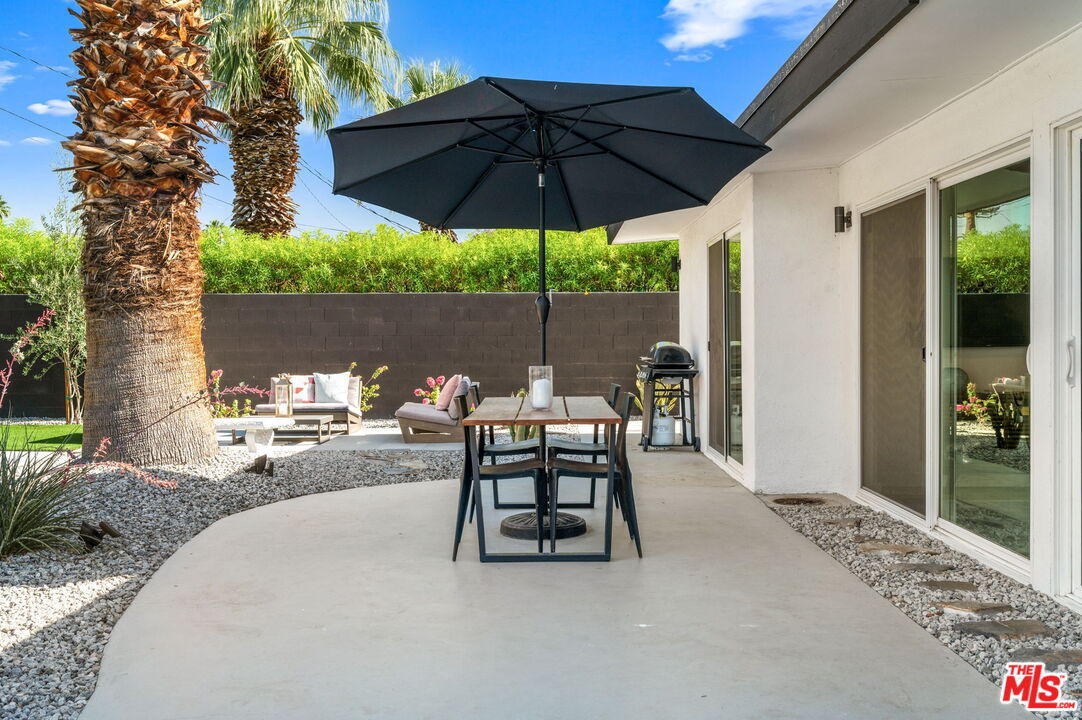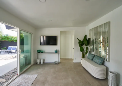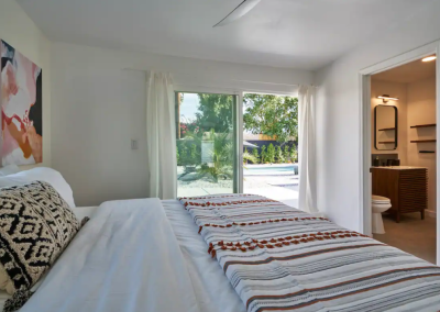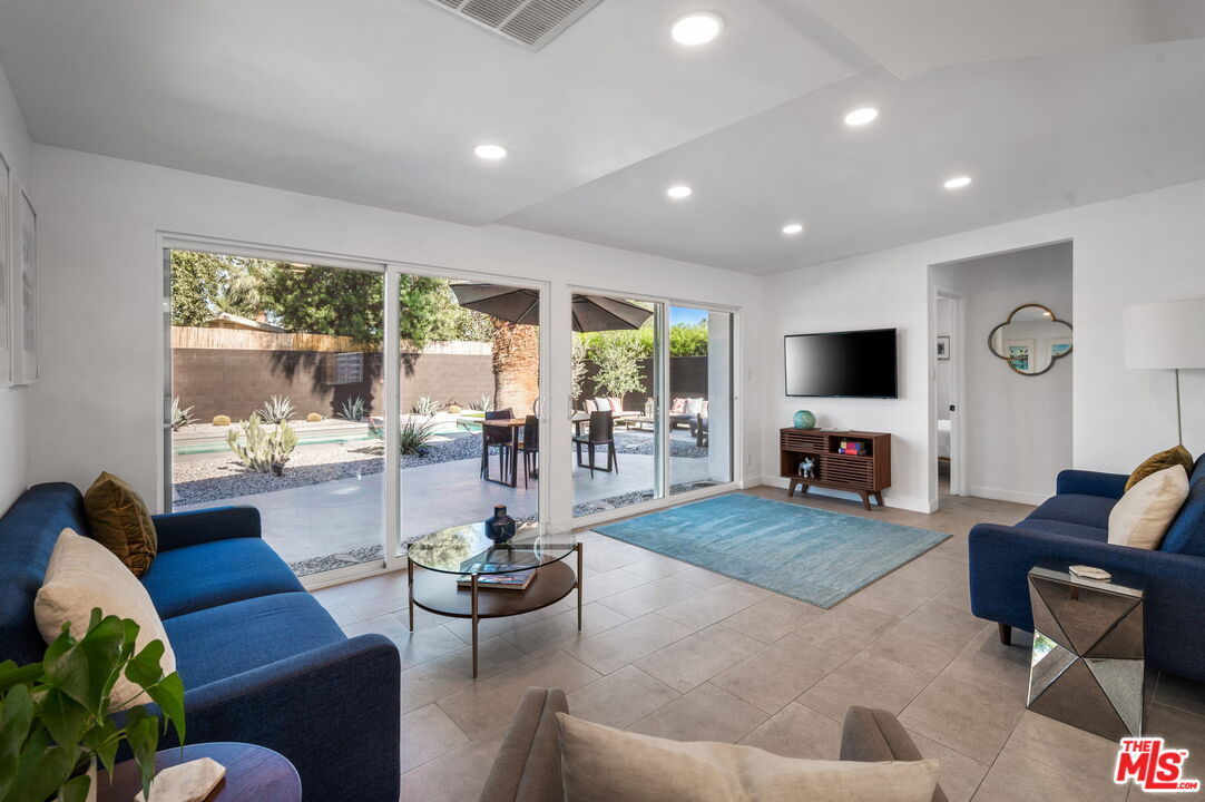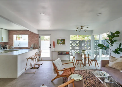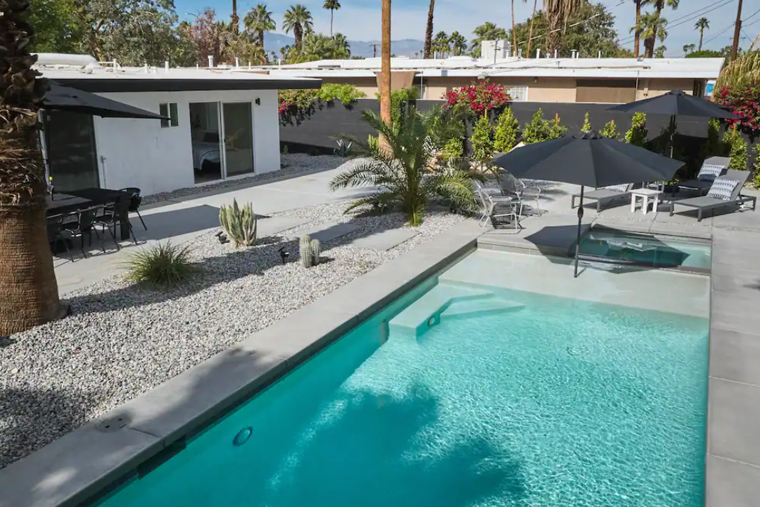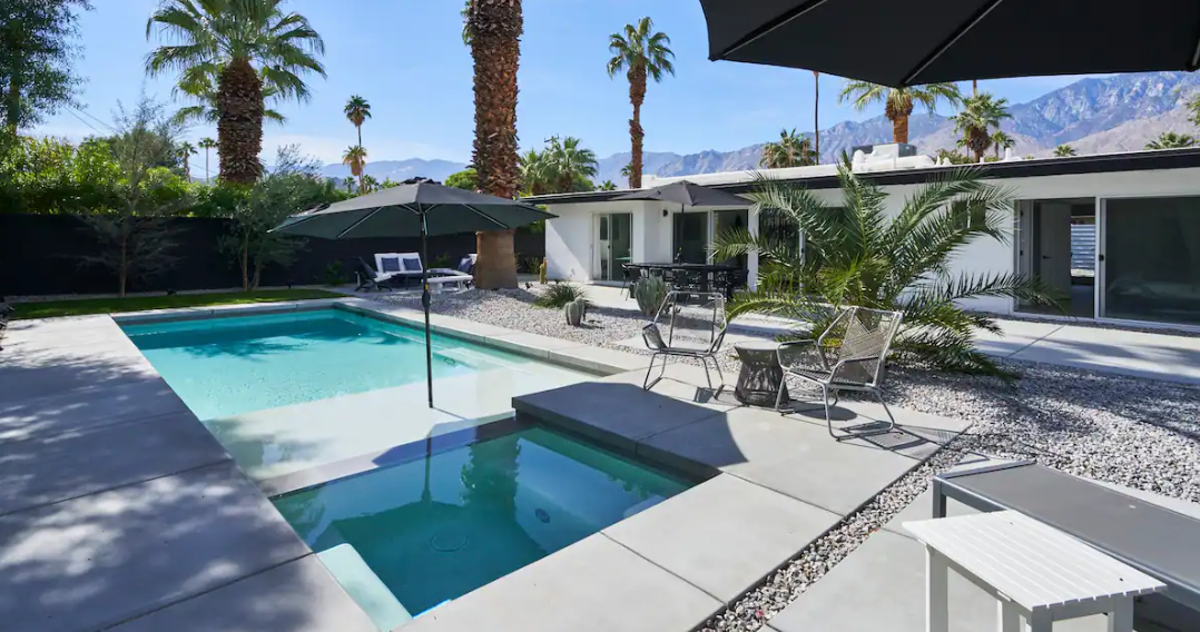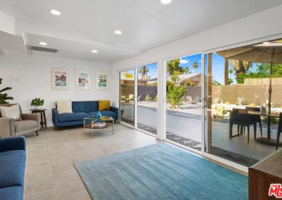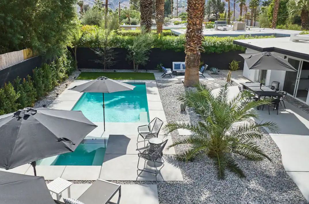 A private mid-century compound designed for fun and relaxation. Located on a large lot (FEE land) on a cul-de-sac street, in one of the most convenient neighborhoods in South Palm Springs, only minutes from downtown, and just one block away from Demuth Park! This custom home showcases a newer remodel that respects its heritage while complimenting it with beautiful design and today’s preferred appointments. Featuring four bedrooms and two bathrooms, this open concept home is an entertainers dream and would make an excellent weekend getaway, forever home, or vacation rental. In fact, this home has a very successful short term rental history, with nothing but five star guest reviews. Enjoy iconic mountain views from your private backyard with a newly built heated pebble tech pool / spa with smart phone automation, fire pit, and multiple entertainment zones. Come see to appreciate, you don’t want to miss this one!