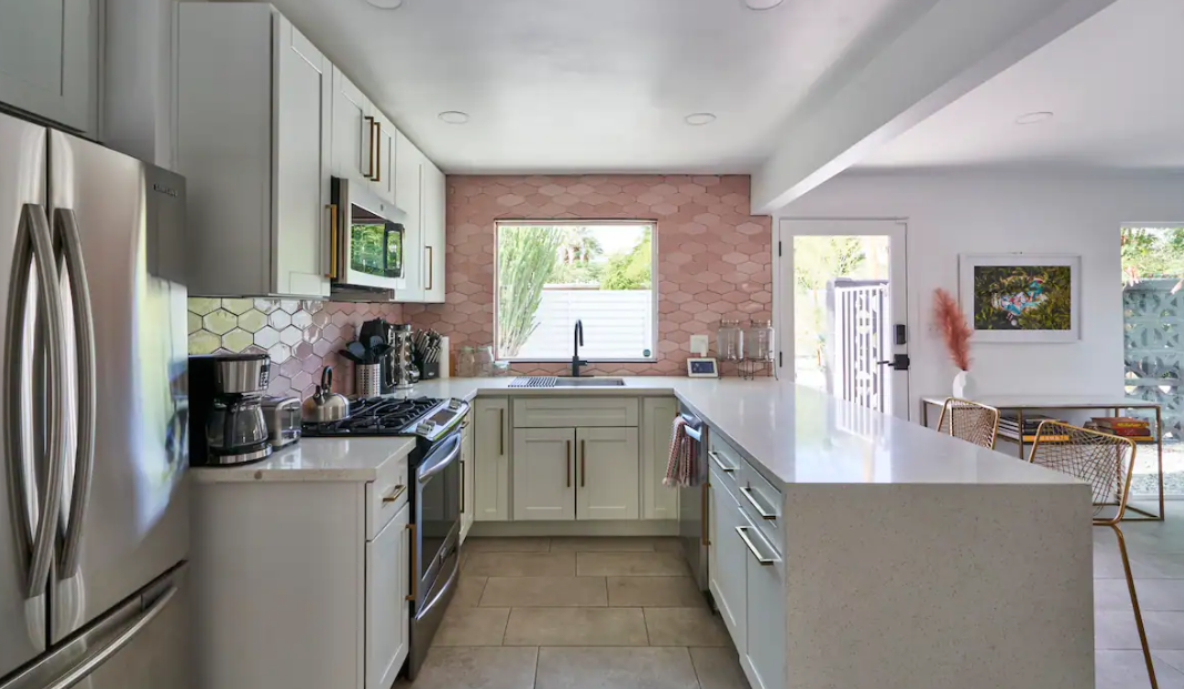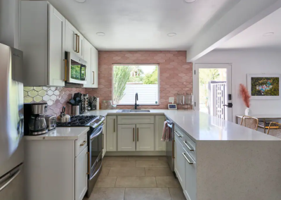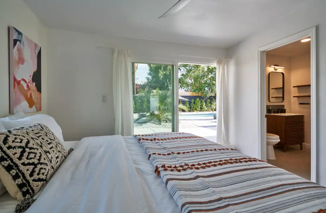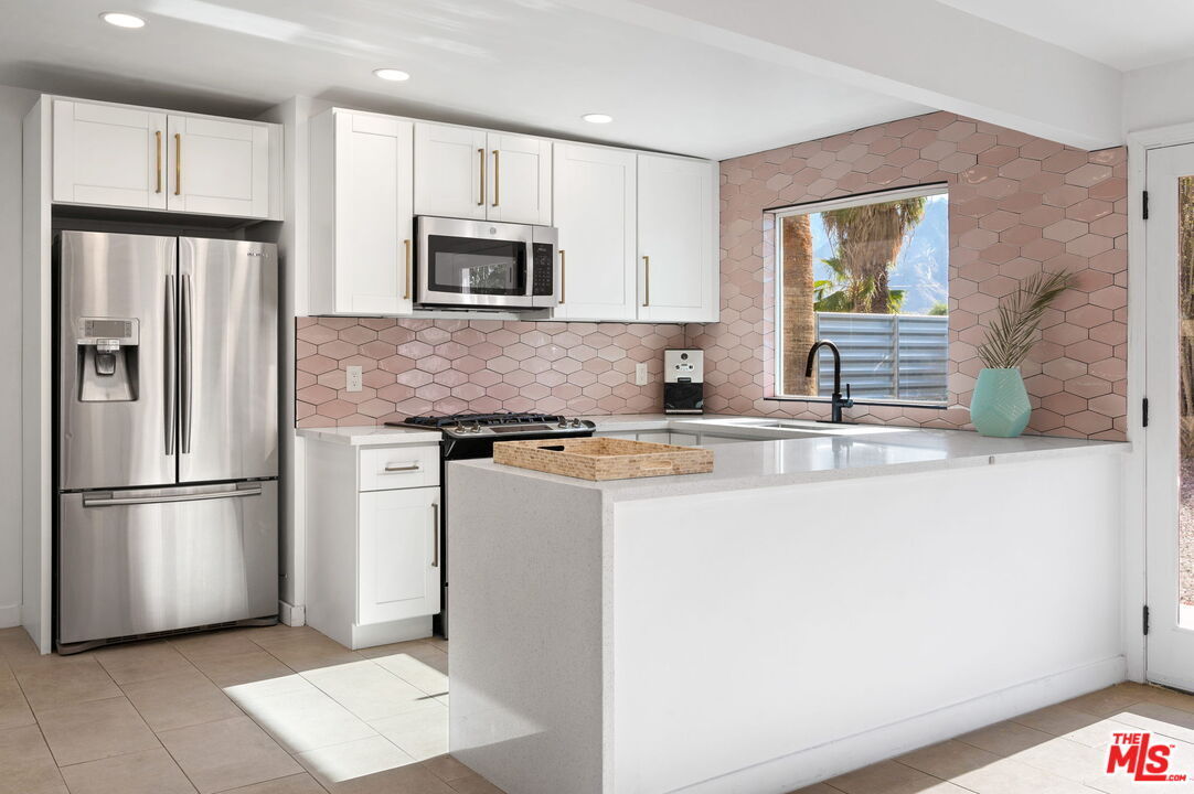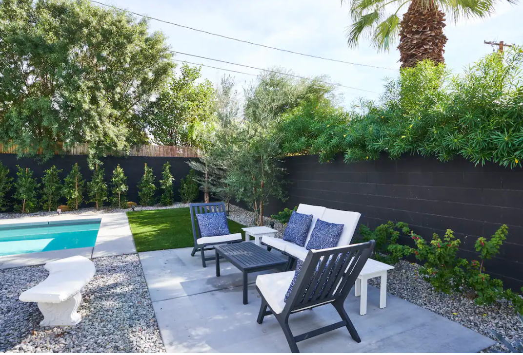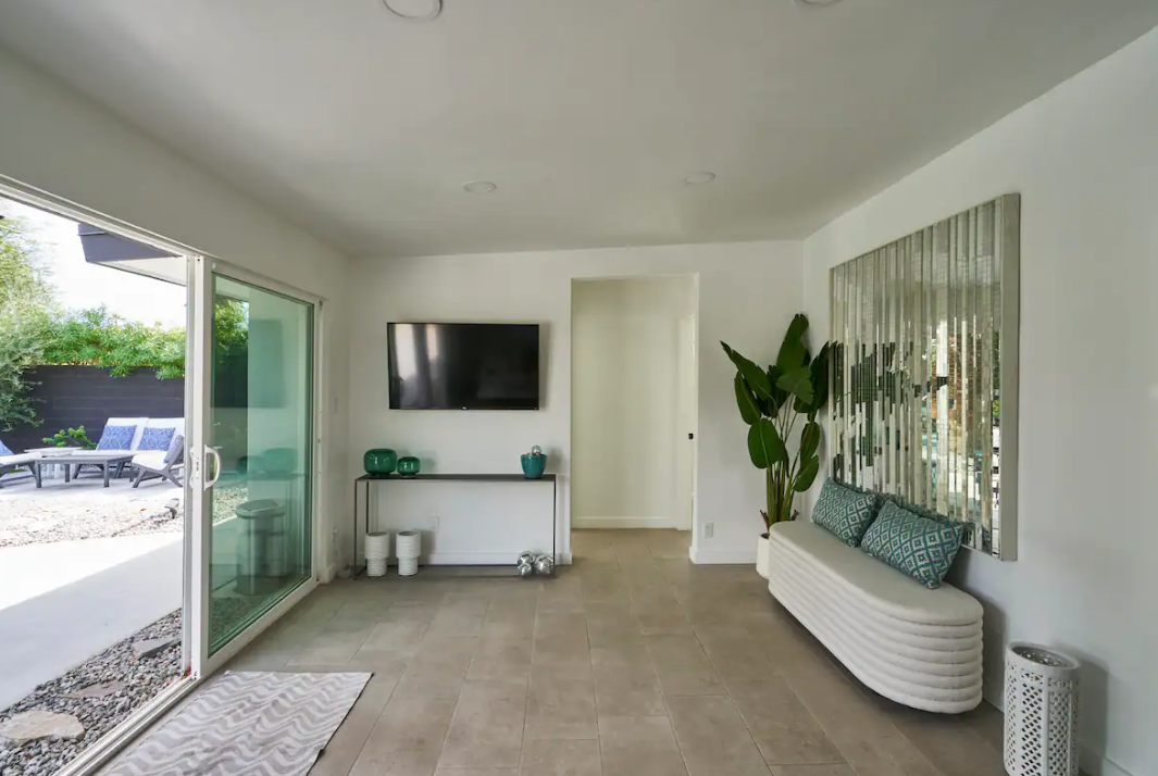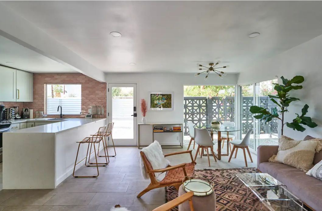 A private mid-century compound designed for fun and relaxation. Located on a large lot (FEE land) on a cul-de-sac street, in one of the most convenient neighborhoods in South Palm Springs, only minutes from downtown, and just one block away from Demuth Park! This custom home showcases a newer remodel that respects its heritage while complimenting it with beautiful design and today’s preferred appointments. Featuring four bedrooms and two bathrooms, this open concept home is an entertainers dream and would make an excellent weekend getaway, forever home, or vacation rental. In fact, this home has a very successful short term rental history, with nothing but five star guest reviews. Enjoy iconic mountain views from your private backyard with a newly built heated pebble tech pool / spa with smart phone automation, fire pit, and multiple entertainment zones. Come see to appreciate, you don’t want to miss this one!